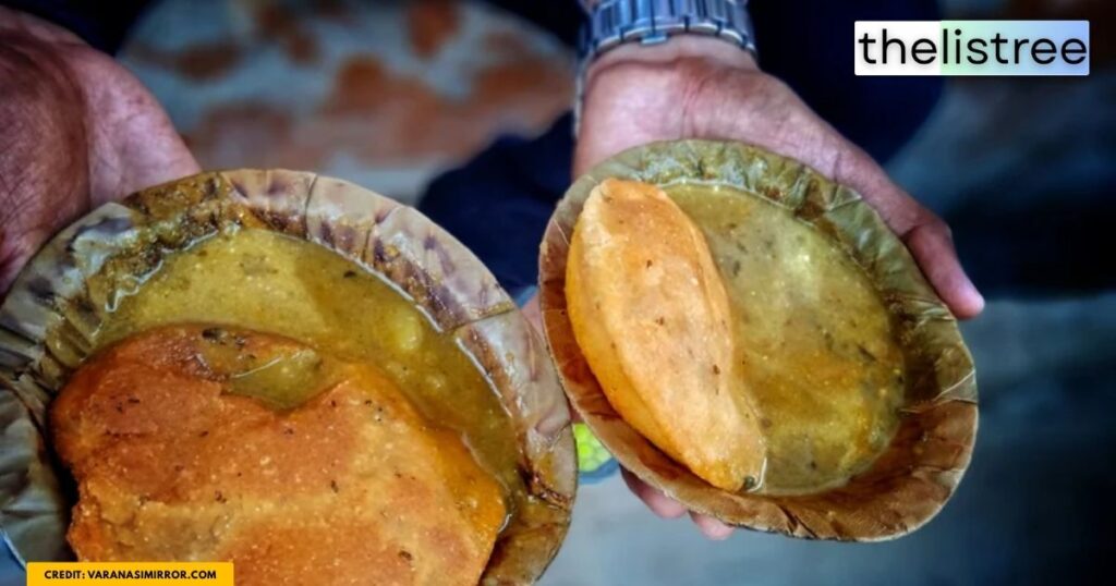 Served hot in the morning, Kachori Sabzi is the absolute soul of every Varanasi morning. Unlike the dry kachoris found elsewhere, Varanasi offers two varieties for breakfast: the Badi Kachori (large and stuffed with spiced dal) and the Choti Kachori (smaller, crispier, and potato-filled). They are dunked in a deeply flavorful, fiery potato and chickpea gravy (sabzi) infused heavily with asafoetida (hing).