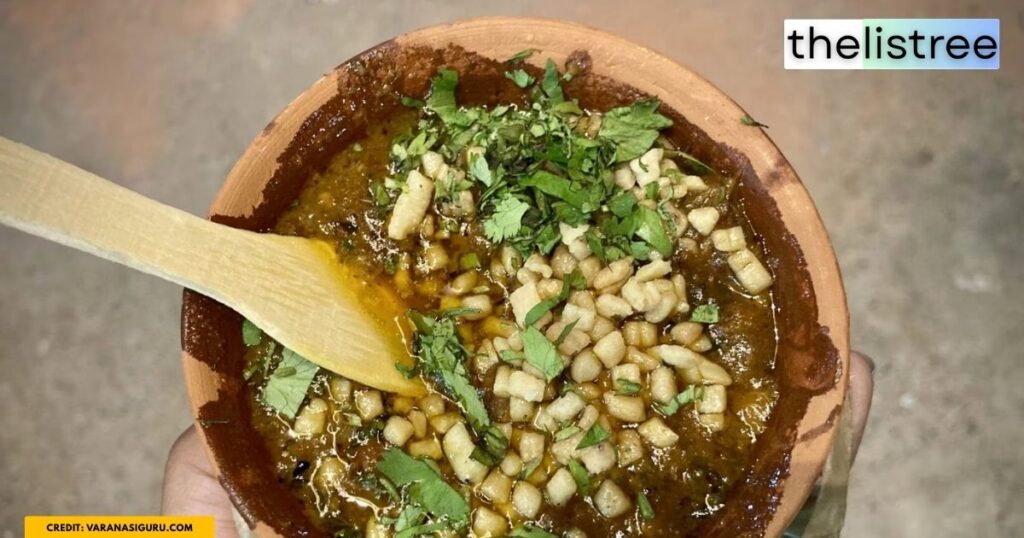 You cannot talk about Banarasi street food without mentioning the iconic Tamatar Chaat. Unlike typical aloo tikki chaats, this heavily spiced local dish is made by mashing tomatoes, boiled potatoes, green chilies, and ginger. It is served steaming hot in a traditional earthen clay bowl (kulhad) and topped with a sweetish syrup, crispy sev, and a generous dollop of pure desi ghee.