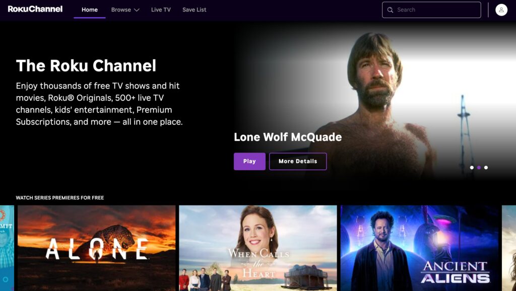 - Best For: Premium classic movies and Roku original programming.